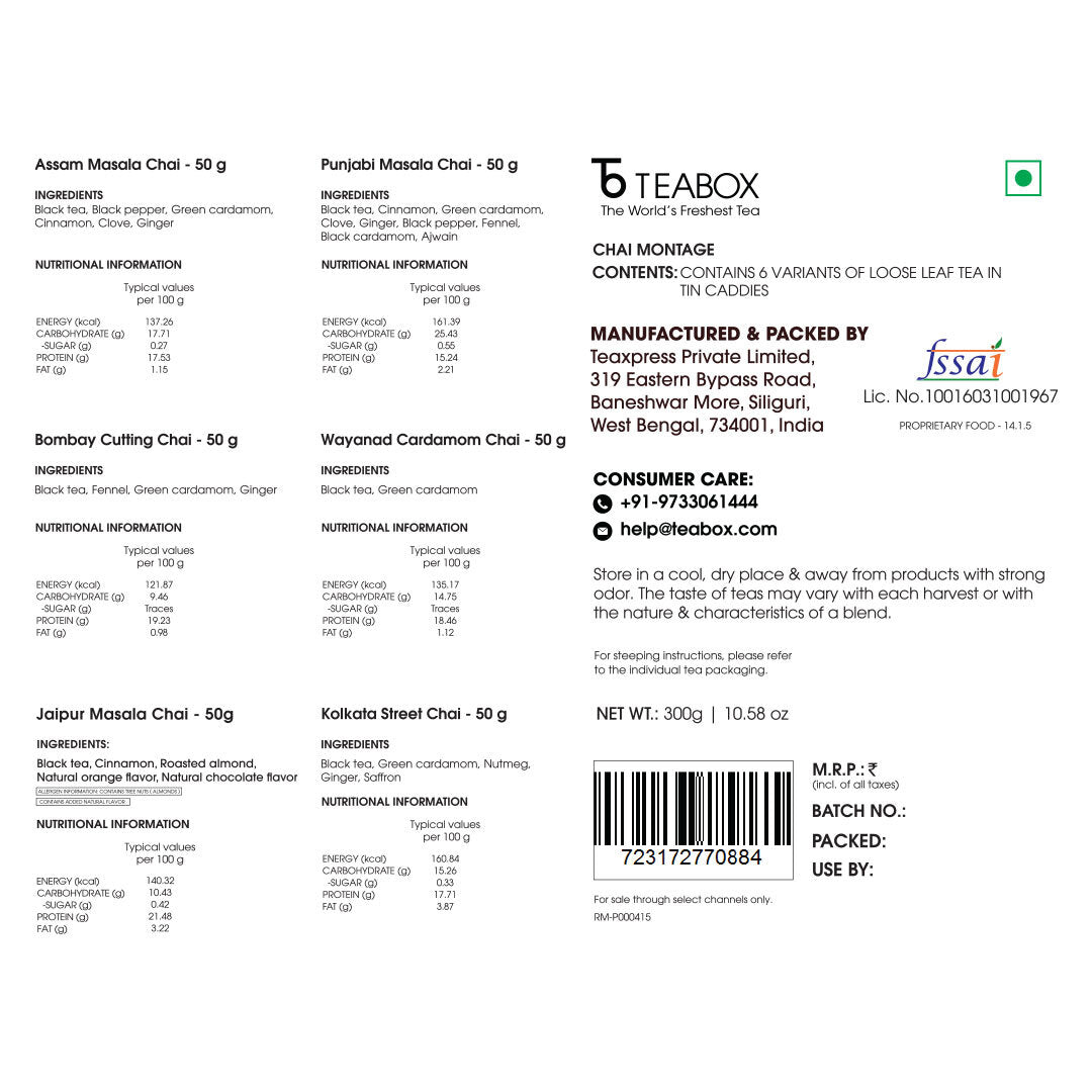 A gift of 6 signature exotic chai blends, each a flavorful journey through India’s rich culture & traditions.