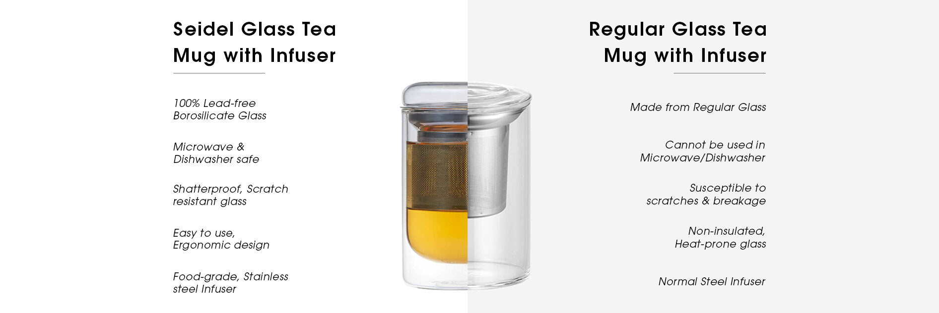 Steep and enjoy your tea effortlessly with this double-walled glass mug and fine-mesh infuser.
